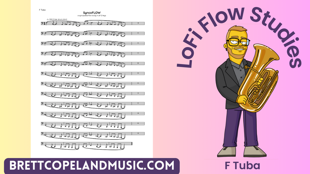 This flow study in all 12 keys gives players the opportunity to work on melodic phrasing, developing their low register, and sense of groove. This simple melody works great when buzzed on the mouthpiece alone and has been a go-to "first notes of the day" melody.